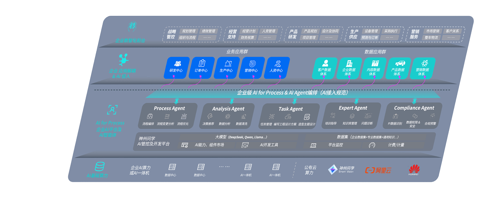 摩登7问学智车解决方案是一套基于AI技术的汽车行业智能化系统,,,覆盖从底层算力到顶层AI应用的全栈方案。。。。方案由算力层、、模型层和应用层组成:算力层,,方案支持多种一体机配置,,,具备云端灵活部署、、、多云适配以及动态优化计算资源的能力;模型层,,摩登7问学平台版提供了企业级AI应用一站式构建与管理平台,,支持基于后训练强化技术的汽车企业专属模型的训练、、评测和运营;应用层,,摩登7问学DeepSeek版提供包括超级员工、、智能招采、、、、智能营销、、、、智能客服、、、AI for BI等一系列解决方案,,,,可助力汽车行业实现数字化转型,,让管理更智能、、、响应更敏捷。。。