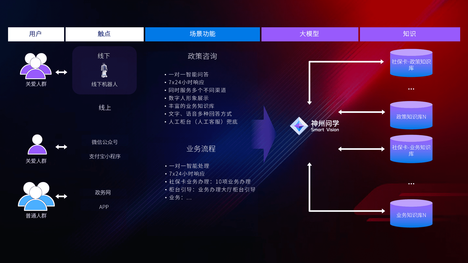 某省人社厅承载全省社保卡业务的咨询、、、、办理、、、、客服人员培训等工作内容;在各基层线下服务大厅,,为用卡群众提供严谨细致、、、热情周到的服务。。